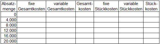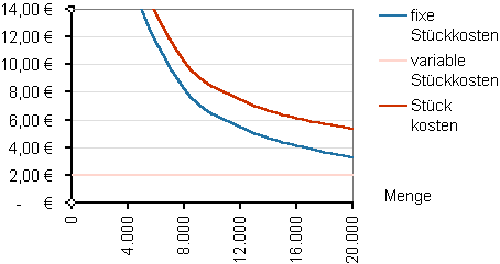 Die gesamten Stückkosten sinken unter den Betrag von 12,00 €, wenn die Ausbringungsmenge größer als 10.000 Stück ist.