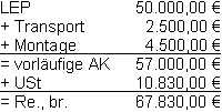 2.1 Ermitteln Sie die vorläufigen Anschaffungskosten.