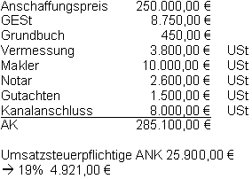 Anschaffungsnebenkosten und Umsatzsteuer