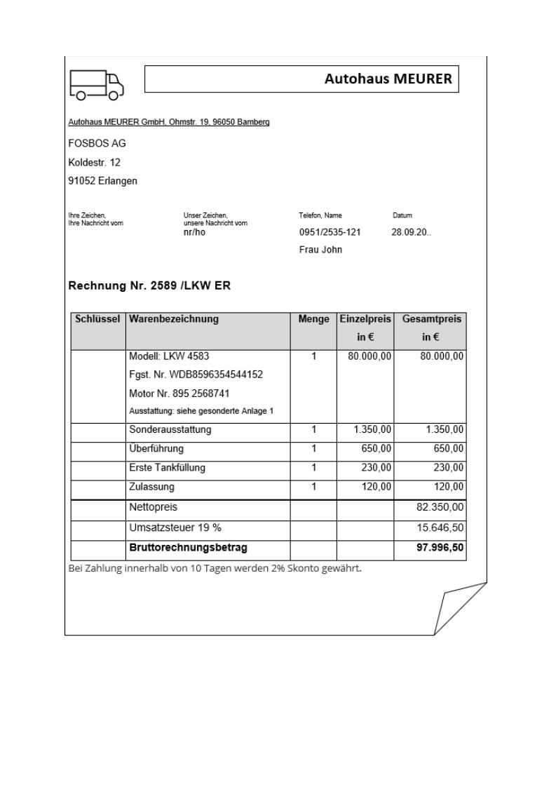 Sie arbeiten in der Buchhaltungsabteilung in der FOSBOS AG, mit Sitz in Erlangen, einem industriellen Zulieferer der Automobilindustrie.