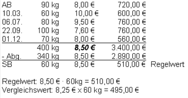 | 400 | 115,00 | 46.000,00 | Zeitwert/Vergleichswert |