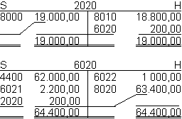 2.2 Stellen Sie die Konten 2020 und 6020 zum 31.12.02 dar und bilden Sie den Buchungssatz für den Jahresgesamtverbrauch.