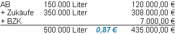 Nach der Methode des gewogenen Durchschnitts werden der Anfangsbestand und die Zugänge mengen- und wertmäßig addiert, um daraus einen Durchschnittspreis zu ermitteln: