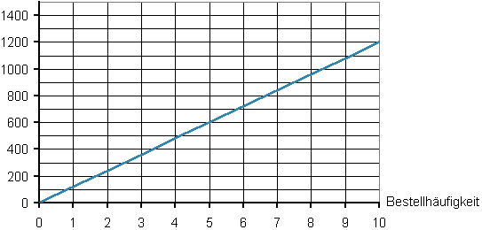 Der grafische Verlauf der Bestellkosten hängt davon ab, welchen Wert man auf die X-Achse schreibt: