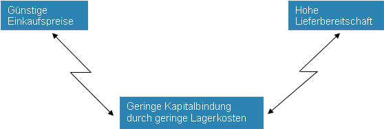bereitgestellt werden. Die Lagerung der Roh-, Hilfs- und Betriebsstoffe soll möglichst geringe Kosten verursachen und dennoch eine hohe Produktions- und Lieferbereitschaft gewährleisten.