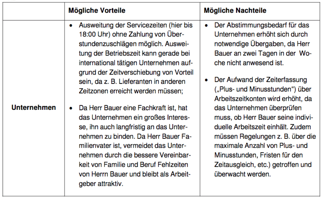 1.2 Erläutern Sie je zwei Vor- und Nachteile, die sich für die SPORT UND FREIZEIT AG aus der vorliegenden Arbeitszeitvereinbarung ergeben.