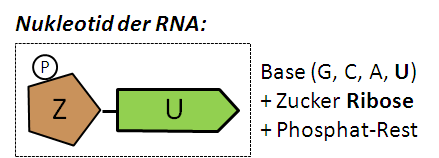 • Der verwendete Zucker ist nicht Desoxyribose, sondern Ribose.
