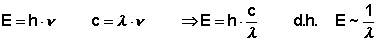 Der Zusammenhang zwischen Energie, Frequenz und Wellenlänge des emittierten Lichts: