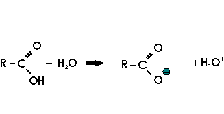 | R-COOH + H2O ⟶ R-COO– + H3O+ | ![]() |