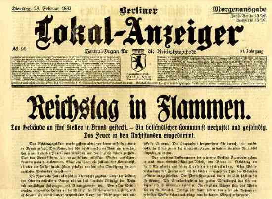 Van der Lubbe war, wie später eine Gerichtsverhandlung feststellte, ein Einzeltäter. Dennoch ließen Goebbels und Göring noch in der selben Nacht verbreiten, dass der Reichstagsbrand eine kommunistische Verschwörung sei. Über 4000 kommunistische Abgeordnete und Funktionäre wurden daraufhin verhaftet. Gleichzeitig erging das Verbot der kommunistischen und sozialdemokratischen Presse.