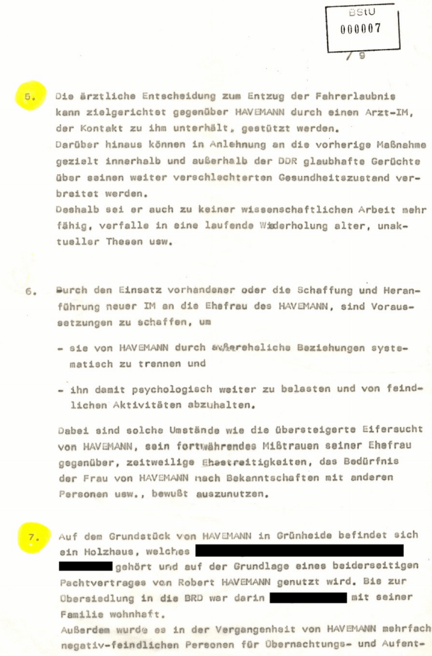1 Arbeiten Sie aus den Quellen die Zersetzungsmaßnahmen der Stasi heraus. Überlegen Sie, welches Ziel damit erreicht werden sollte.