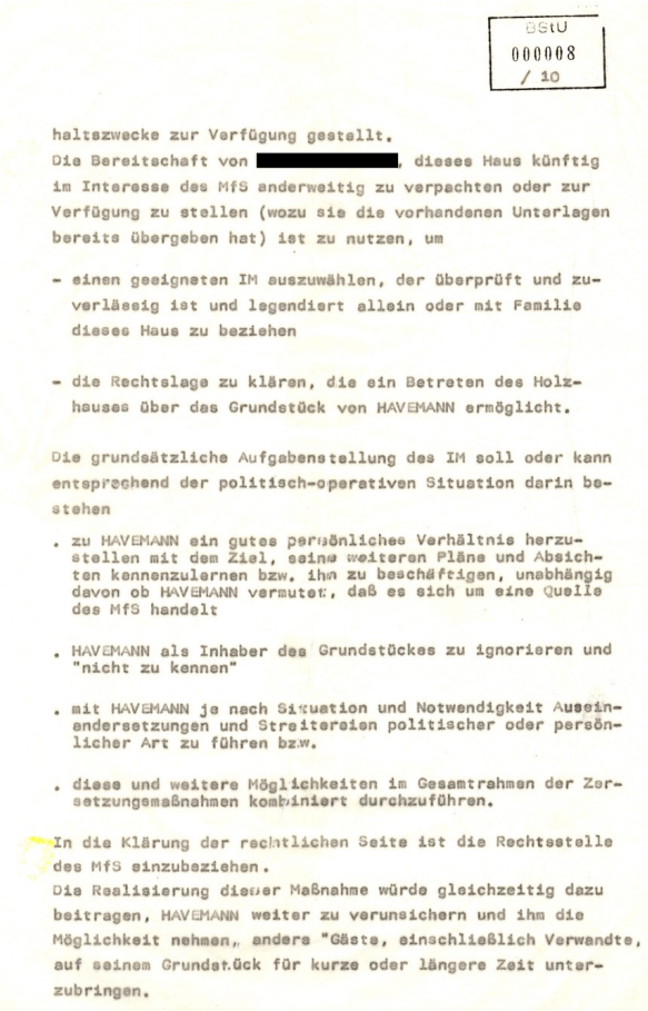 Robert Havemann war ein deutscher Chemiker, der sich bewusst dafür entschieden hatte, in der DDR zu leben, die er allerdings immer kritischer sah. Als entschiedener Gegner der Nationalsozialisten, Widerstandskämpfer und überzeugter Kommunist konnte ihn die DDR-Führung allerdings nicht zu offen verfolgen. Er war daher subtilen Formen der Bekämpfung ausgesetzt.