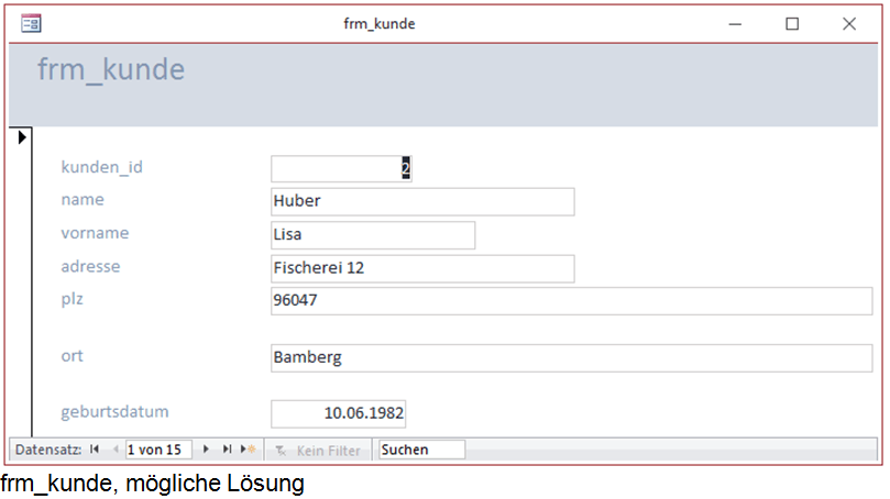 3 Erstellen Sie ein Formular, mit dem alle Kunden samt der PLZ sowie dem Ort im Klartext angezeigt