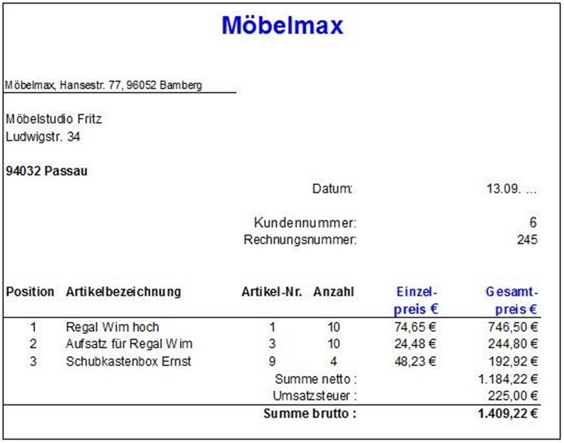 Ausgangsrechnung der Firma Möbelmax