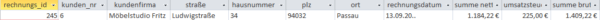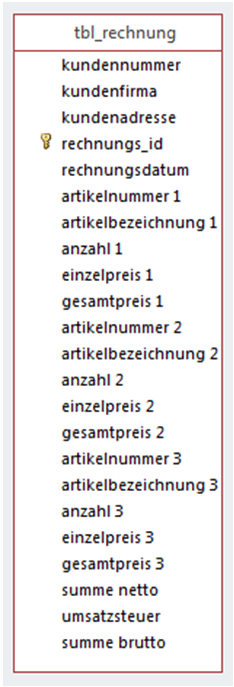 Aus der Ausgangsrechnung abgeleitete Relation „tbl_rechnung“ mit den Rechnungsdaten