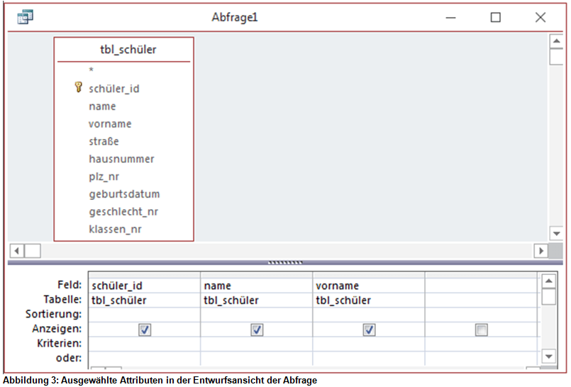 Wie nun eine Abfrage in MS Access erstellt wird, soll im Folgenden gezeigt werden: