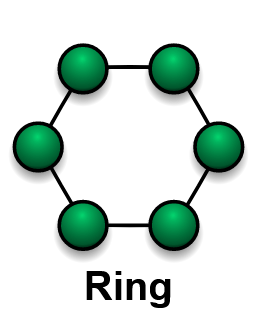 Bei der Verwirklichung der Ring-Topologie dient – ähnlich wie im Falle der Bustopologie – ein einzelnes Übertragungsmedium zur Verbindung der einzelnen Hosts. Im Unterschied dazu bilden die Hosts jeweils sog. Übertragungsknoten, welche von den einzelnen Signalen durchlaufen werden müssen. Dadurch verfügt jeder Host über zwei Kabelverbindungen. Treffen Daten über bei einem Host ein, prüft dieser, ob die Daten für ihn bestimmt sind und er der Adressat ist. Ist das nicht der Fall, so werden die Daten solange weitergeleitet, bis sie beim Adressaten angelangt sind.