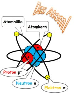 Im Allgemeinen besteht ein Atom aus einem Atomkern und einer Atomhülle. Der Atomkern ist im Vergleich zur Atomhülle ca. 10000 mal kleiner. Im Atom existiert fast ausschließlich leerer Raum.