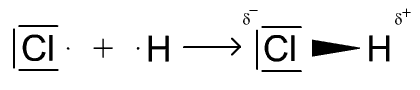 Im Chlorwasserstoffmolekül beobachtet man eine Verschiebung der Bindungselektronen zum Chloratom hin. Dies hat zur Folge, dass die Kernladung des Chlors die zusätzliche negative Ladung nicht mehr vollständig kompensiert. Es tritt am Chlor eine negative Teilladung (auch Partialladung genannt) auf. Umgekehrt wird der Wasserstoff in HCl schwach positiv geladen sein. Die Partialladungen sind wesentlich kleiner als eine Elementarladung. Man kennzeichnet dies durch das kleine griechische Delta.