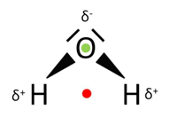 Ein alternatives Konzept untersucht die Lage der “Partialladungsschwerpunkte”. Man sucht dabei nach dem negativen und den positiven “Partialladungsschwerpunkt”. Der negative liegt im Sauerstoffatom (blauer Punkt), der positive zwischen den beiden H-Atomen (roter Punkt). Es gilt: Fallen positiver und negativer Partialladungsschwerpunkt nicht ein einem Punkt zusammen, so liegt ein Dipolmolekül vor, fallen sie in einem Punkt zusammen, so ist das Teilchen ein Nicht-Dipolmolekül.