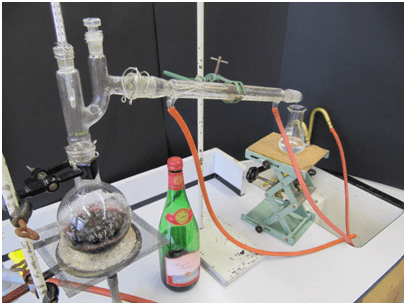 © Belinda Flemming: Versuchsapparatur zur Destillation von Rotwein, CC BY-SA