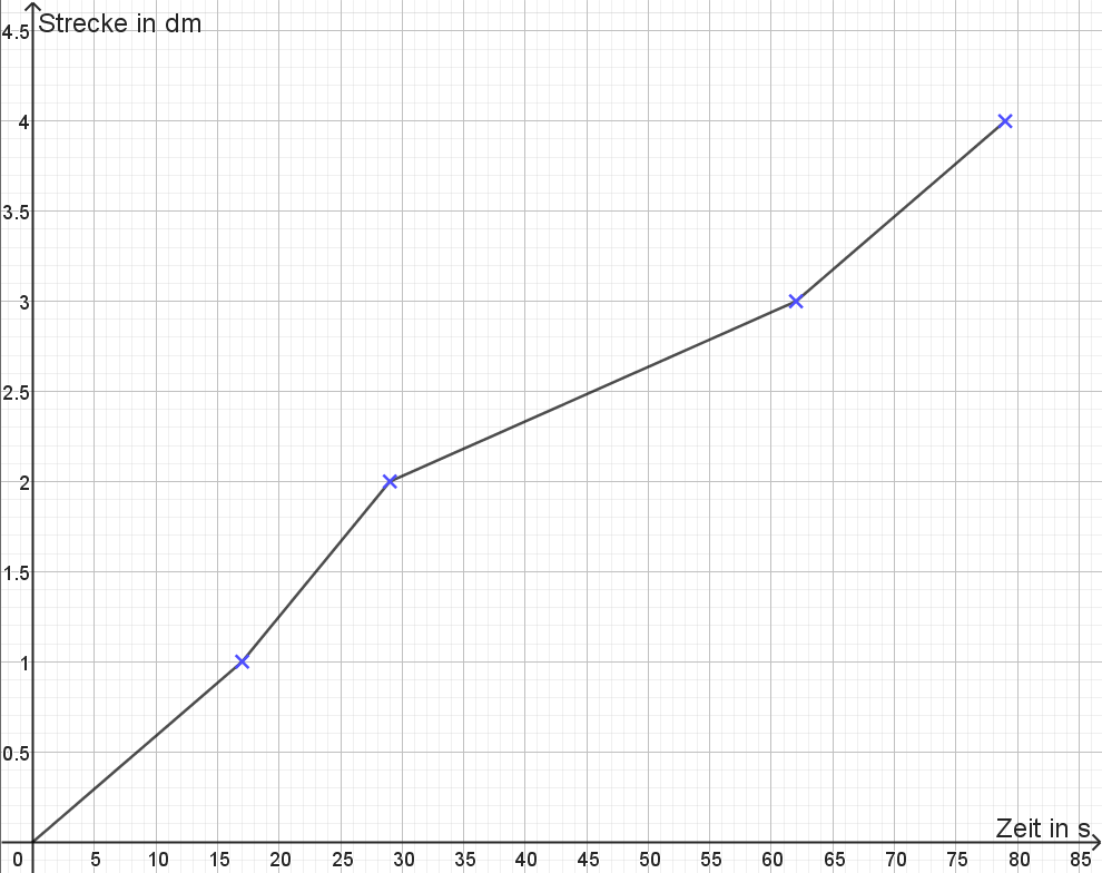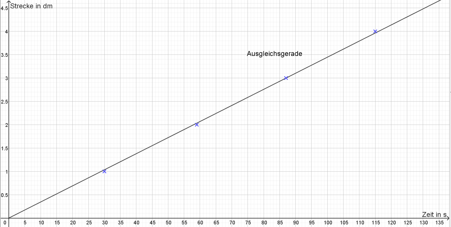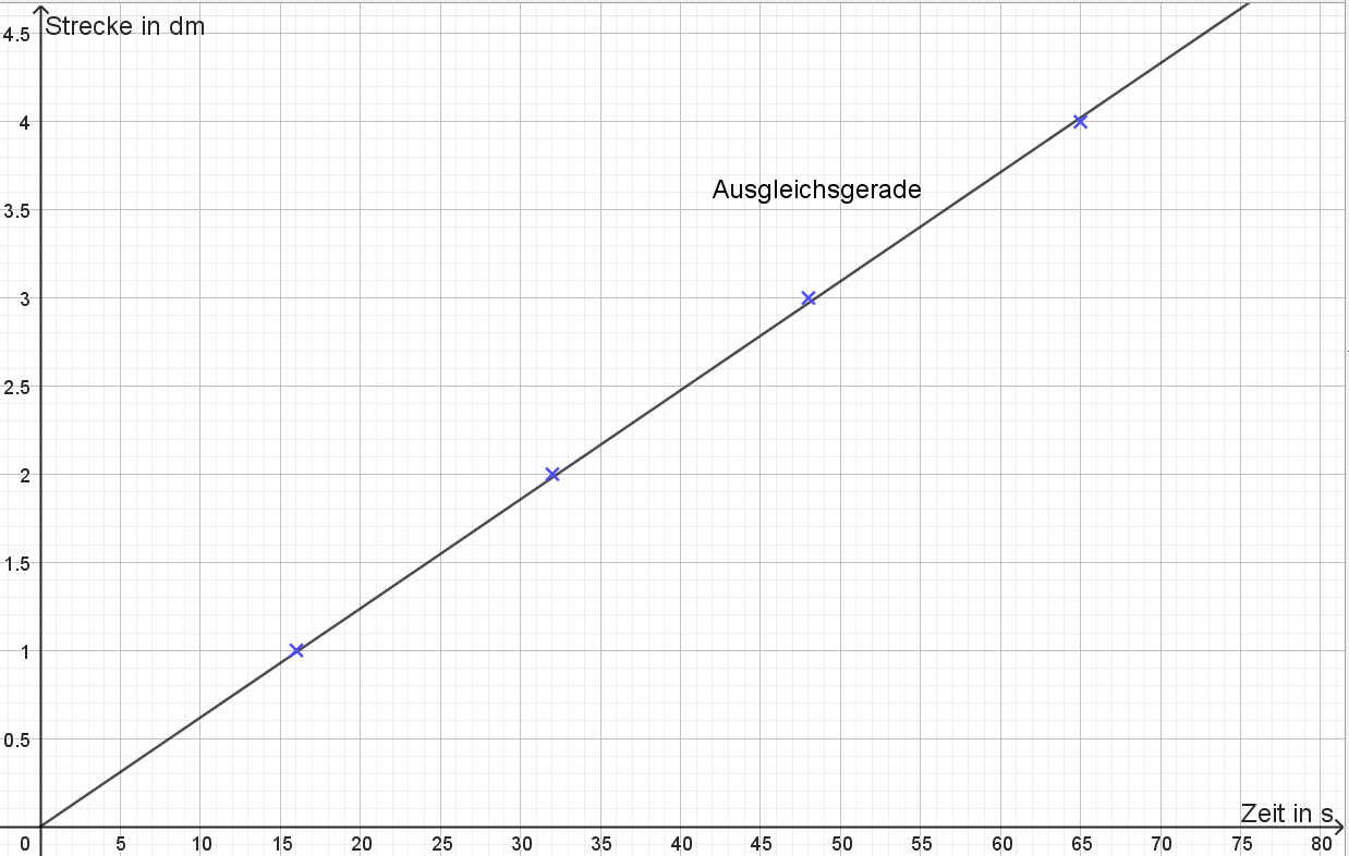 Zeit-Weg-Diagramm: Im Rahmen der Messgenauigkeit handelt es sich um eine gleichförmige Bewegung.
