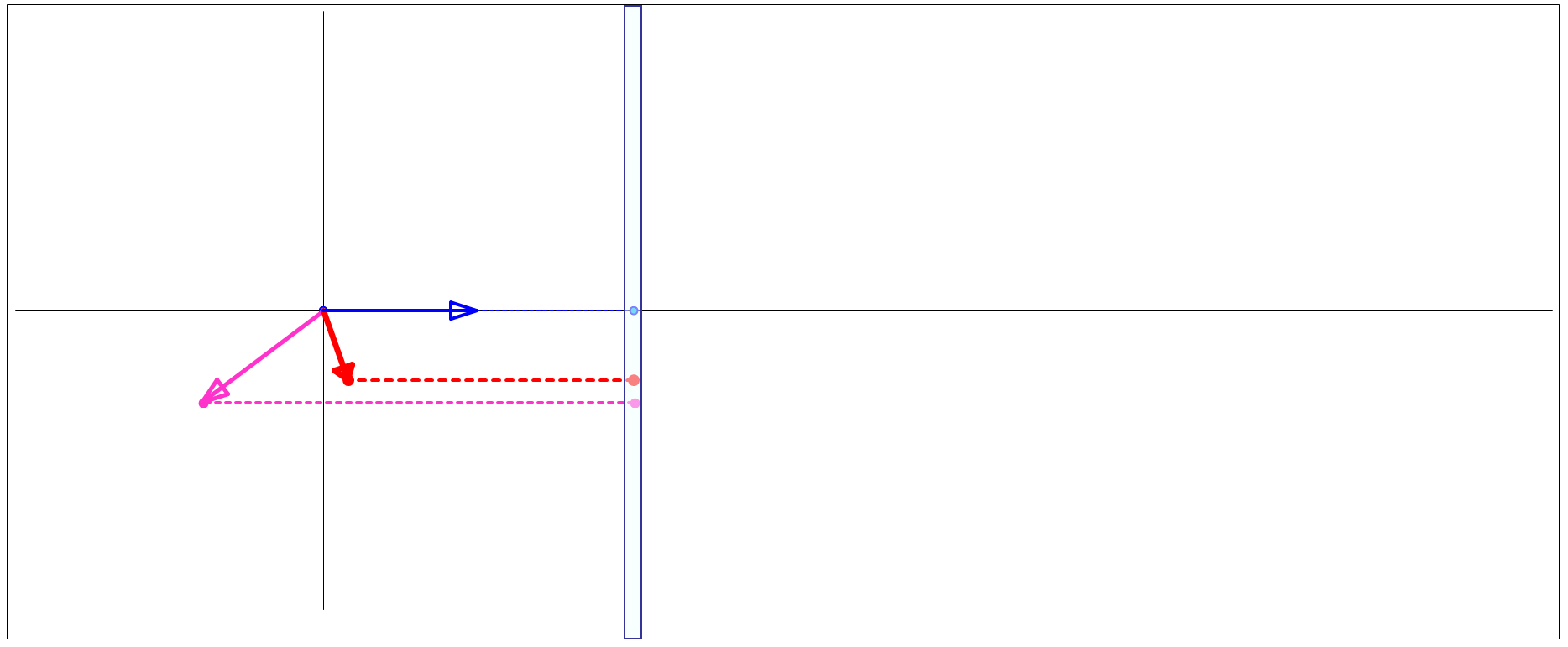 Im obigen Beispiel kommt die Welle, die durch den blauen Zeiger repräsentiert wird, früher (nicht ganz einen Wellenberg) am Beobachtungspunkt an, deshalb wird der blaue Zeiger um Δφ vorauseilend gegenüber dem violetten Zeiger eingezeichnet.