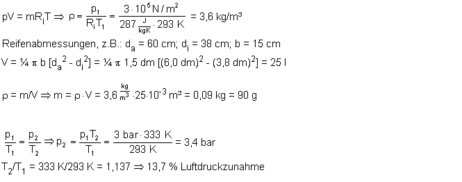 Bestimmen Sie die im Reifen enthaltene Luftmasse!