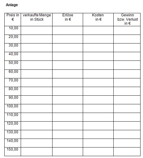 2 Beschaffen Sie sich die notwendigen Informationen zur Festlegung des gewinnmaximalen Preises. (Anlage 1)