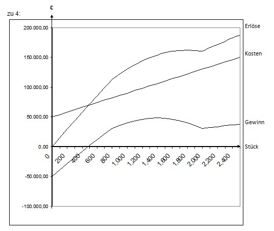 4 Veranschaulichen Sie die Situation mit Hilfe einer Grafik. Stellen Sie hierzu die Erlöse, die Kosten und den Gewinn dar.