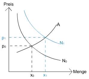 Durch solche Maßnahmen erhöht sich die Nachfrage, Gleichgewichtspreis und -menge steigen.