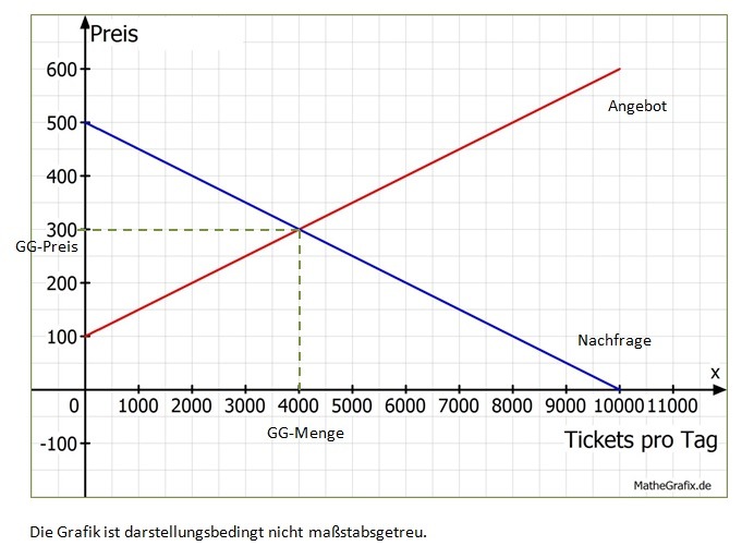 pN = – 0,05x + 500 (mit x = Zahl der Tickets pro Tag)