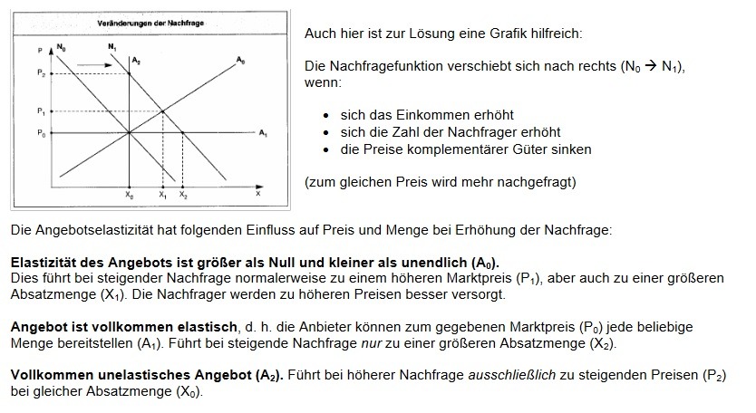Erklären Sie, unterstützt durch eine grafische Darstellung, wie sich Gleichgewichtspreis und -menge bei steigender typischer Nachfrage (Verschiebung der Nachfragefunktion nach rechts) verändern,
