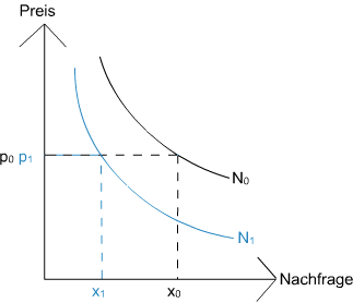 Ändern sich andere Determinanten der Nachfrage als der Preis, so verschiebt sich die Funktion der Nachfrage.