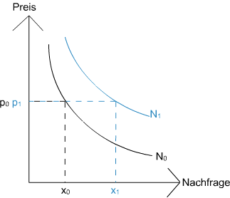 Steigt z.B. die Zahl der Nachfrager durch Zuwanderung, so verschiebt sich die Funktion nach rechts.